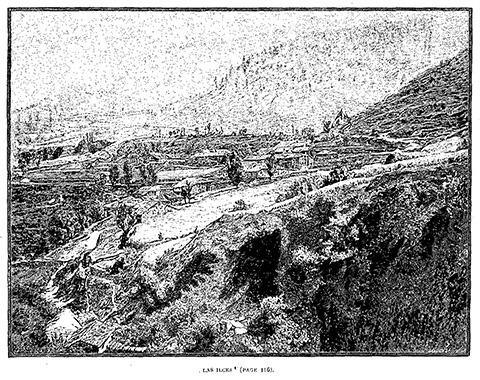 Pero ahí está el camino de la mina que describe sus curvas sobre la vertiente. En la plataforma tenemos sombra; hace fresco. Nuestros hombres aceleran la marcha; pronto aparece la casa de las minas. Allí nos atienden; la cama “del rey” está preparada.